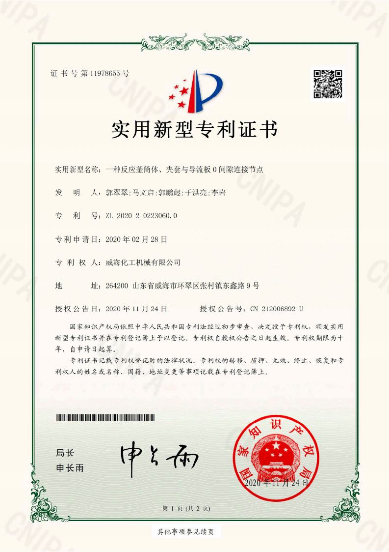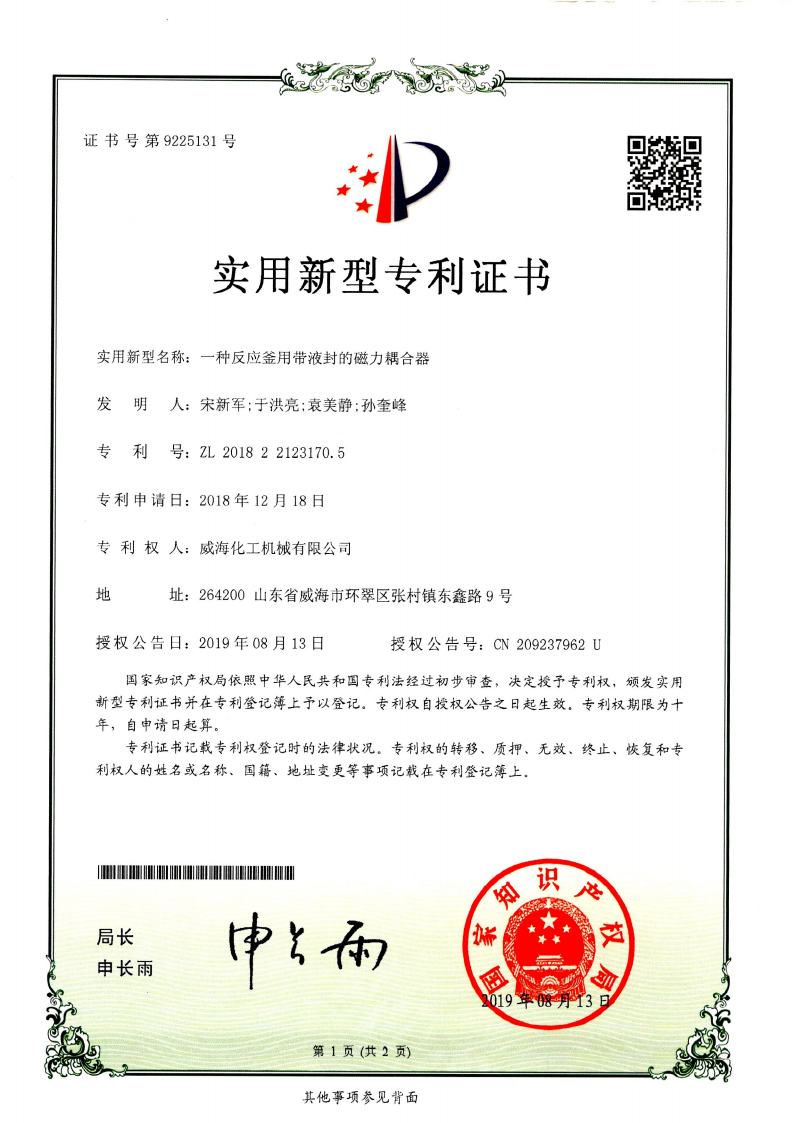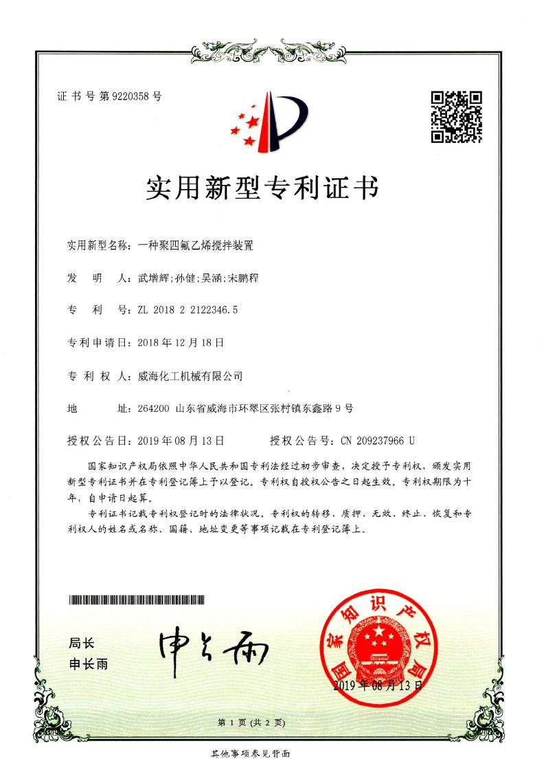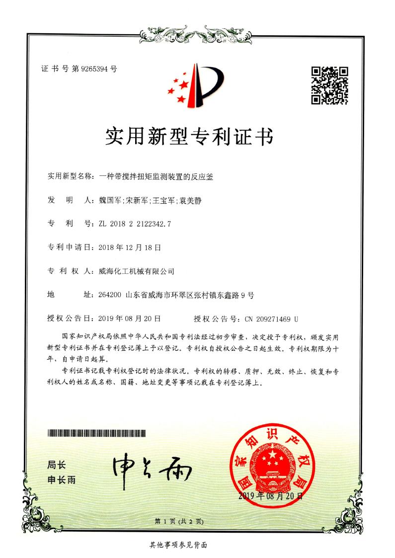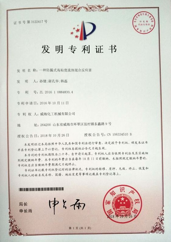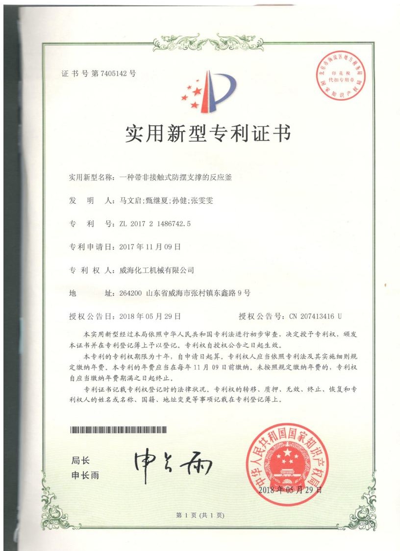 公司建有磁力驱动测试试验室、搅拌模拟试验室、反应釜流体混合搅拌重点实验室等,科研力量雄厚。截至2024年,公司共承担近280项自主/合作开发任务,先后承担省级新产品开发任务25项,其中23项产品已达到国内水平。获得各类省、市级技术创新奖30余项;参与起草、修订标准共8项,GB/T30098-2013实验室用磁力驱动反应釜标准、HG/T3648-2011磁力驱动反应釜标准、GB/T29254-2012实验室反应釜用控制器标准、NB/T47002.1~47002.4-2019压力容器用复合板;已获得授权专利95项,其中发明专利19项,实用新型专利69项,外观专利7项;拥有专有技术和核心技术40余项。