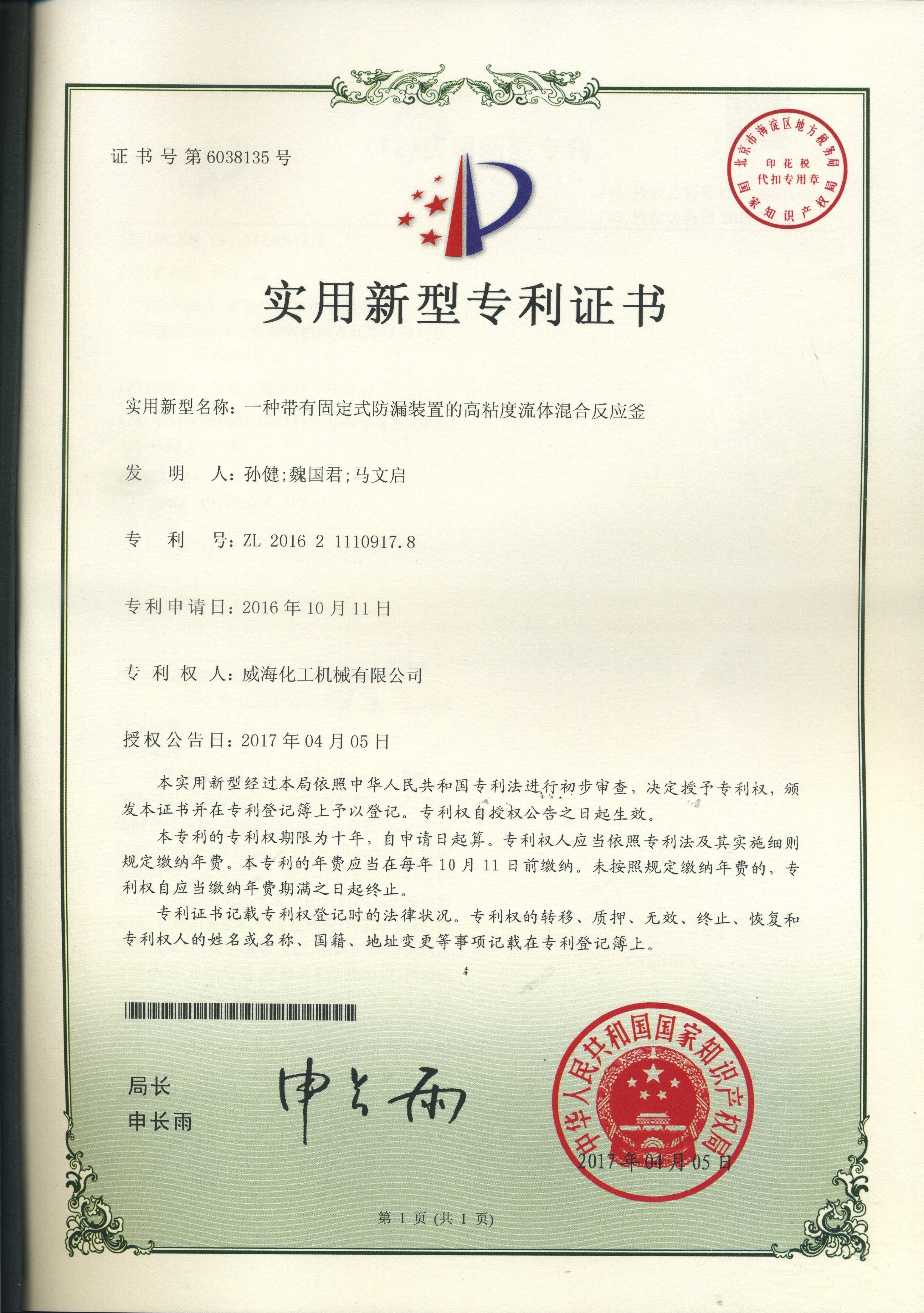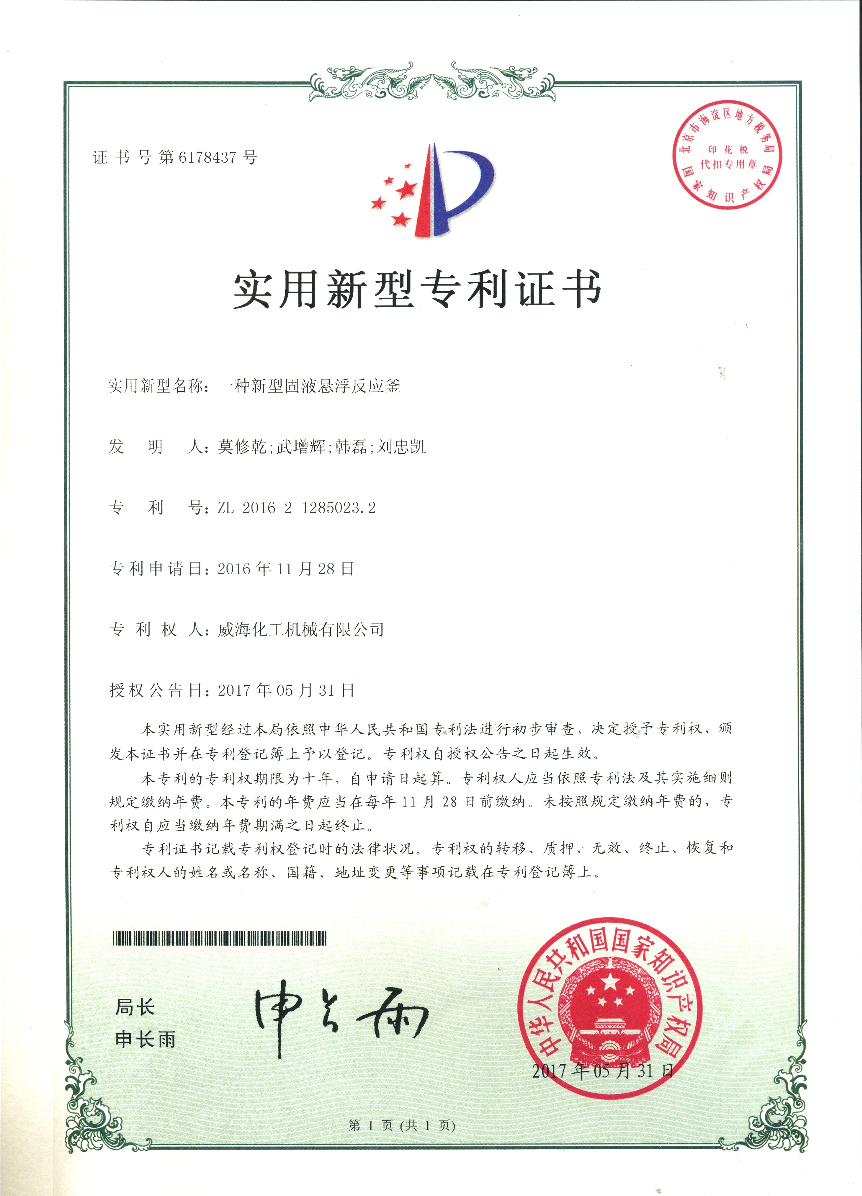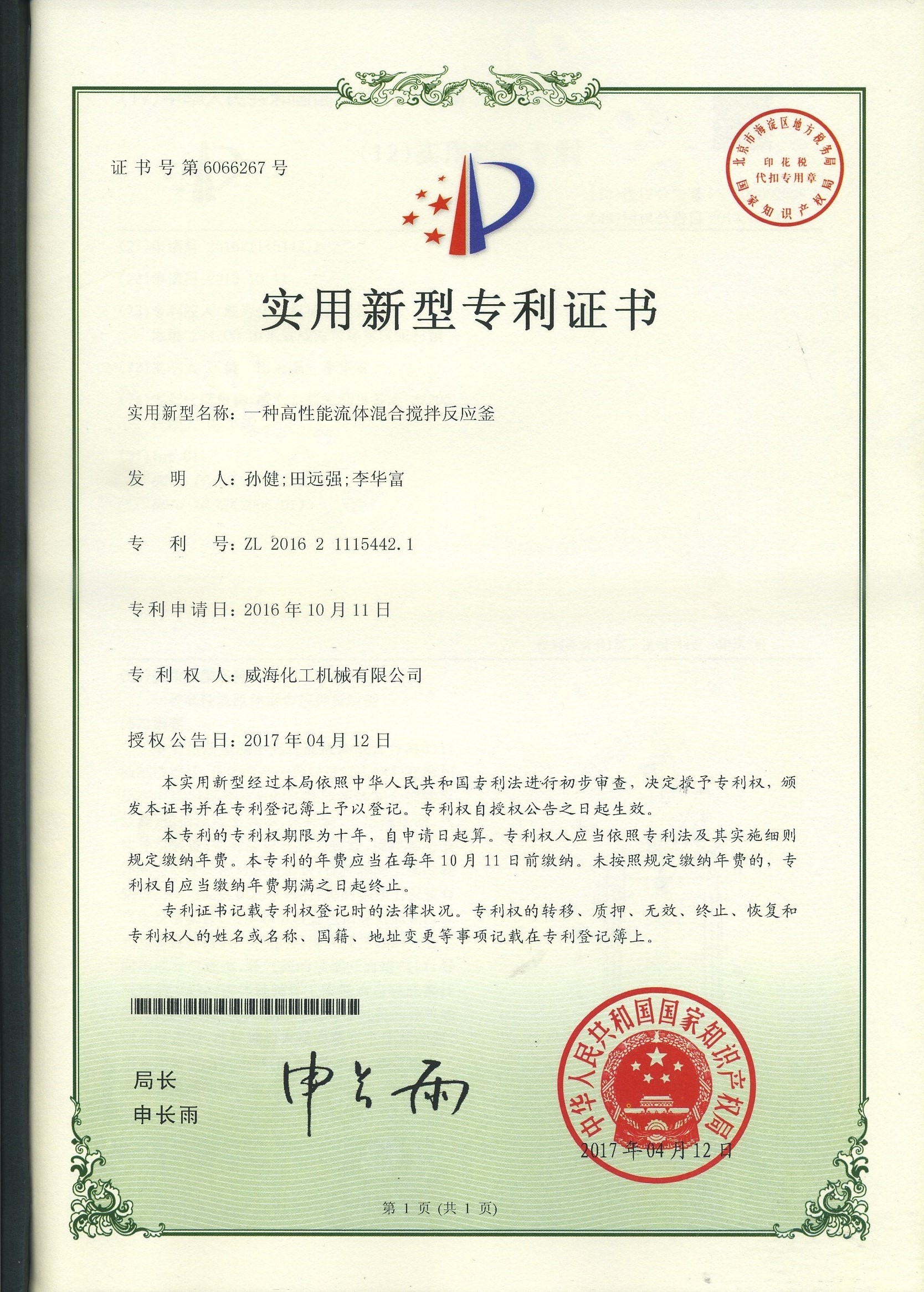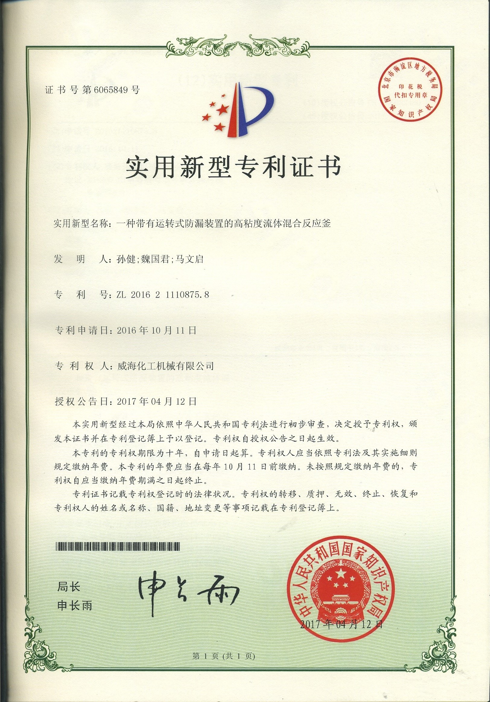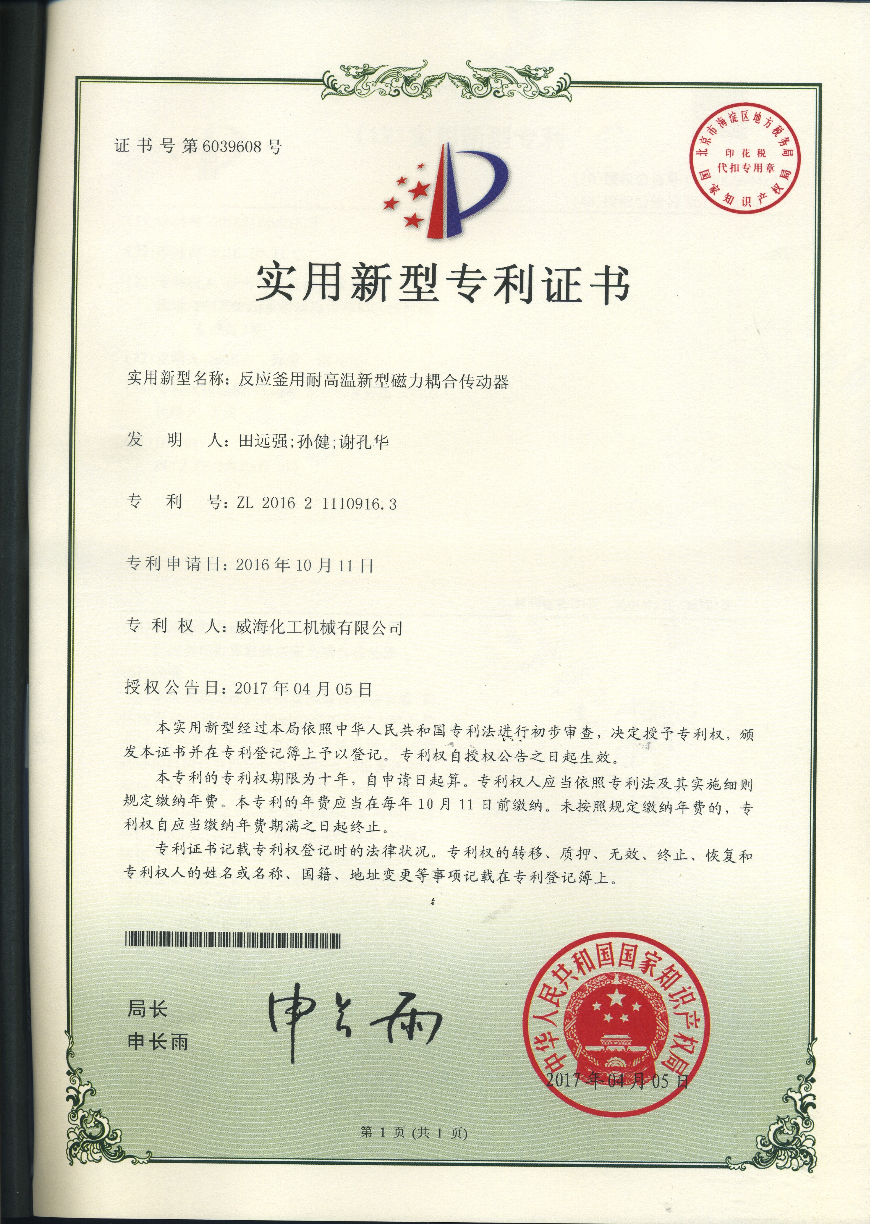 公司建有磁力驱动测试试验室、搅拌模拟试验室、反应釜流体混合搅拌重点实验室等,科研力量雄厚。截至2024年,公司共承担近280项自主/合作开发任务,先后承担省级新产品开发任务25项,其中23项产品已达到国内水平。获得各类省、市级技术创新奖30余项;参与起草、修订标准共8项,GB/T30098-2013实验室用磁力驱动反应釜标准、HG/T3648-2011磁力驱动反应釜标准、GB/T29254-2012实验室反应釜用控制器标准、NB/T47002.1~47002.4-2019压力容器用复合板;已获得授权专利95项,其中发明专利19项,实用新型专利69项,外观专利7项;拥有专有技术和核心技术40余项。